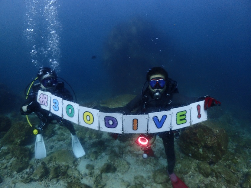 そして今回やっと記念ダイブをやることができたM氏🤩いつも忘れててキリのいい記念ダイブは過ぎてたりしてて・・・今回の300ダイブは忘れず申告がありましたのでお祝いのケーキも用意させていただきました🎂