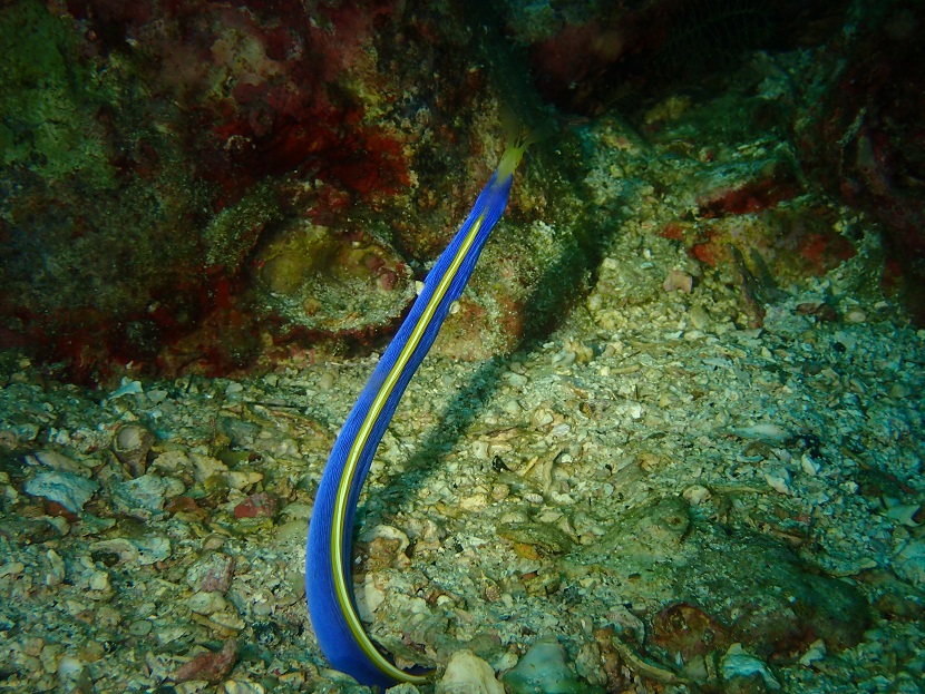 黒い個体幼魚も見ることができました。N氏はハナヒゲウツボお初でしたので黒から青に、青から黄色にとご紹介させていただきました🐍