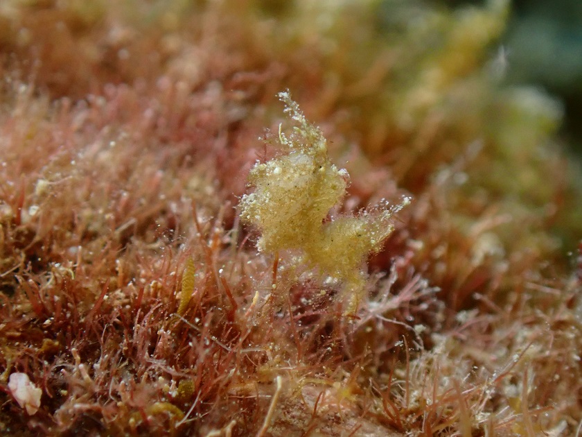 こちらはごみ?藻?草?いやフィコカリスシムランスと言うエビちゃんです。ゴミにしか見えませんが😂 海にはこんな生物もいるんです。不思議ですよね~ちなみにこいつは右を向いておりまして若干黒い点が目かと思います👀