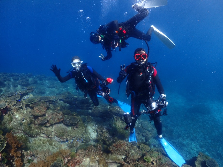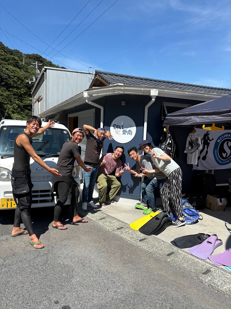 愛南にて水中で記念撮影。愛南でこの週はGULLさんがモニター会をされてまして、皆さんそれぞれ思いフィンを使われていました。Kさんはバラクーダ、Mさんはスーパーミュー、Yさんもミューはスカスカするので次はスーパーミューを・・・皆さん使い心地はどうだったのでしょうか???🙄