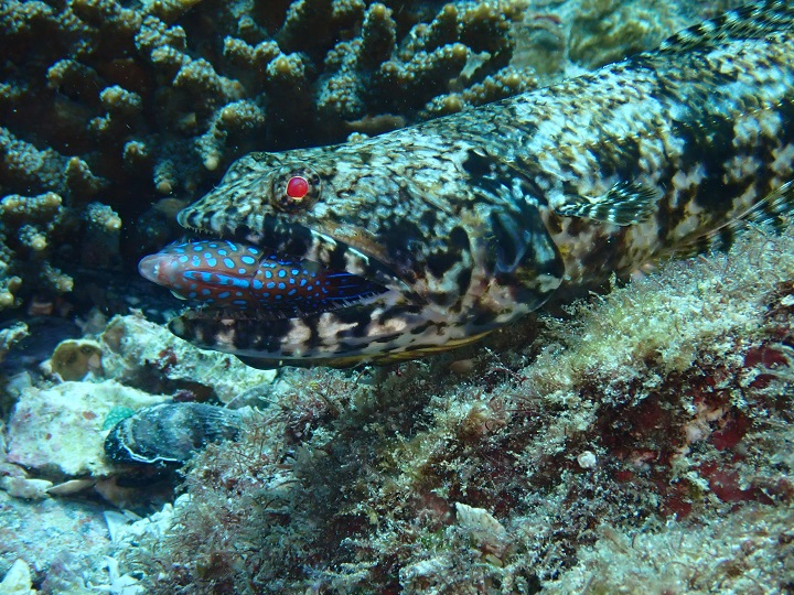 こちらはエソですが、口元を見て頂きましたらお分かりかと思いますが他の魚を捕食しております😋仕方ないですが海の中も弱肉強食の世界です。食べるか?食べられるか?は、となり合わせ・・・