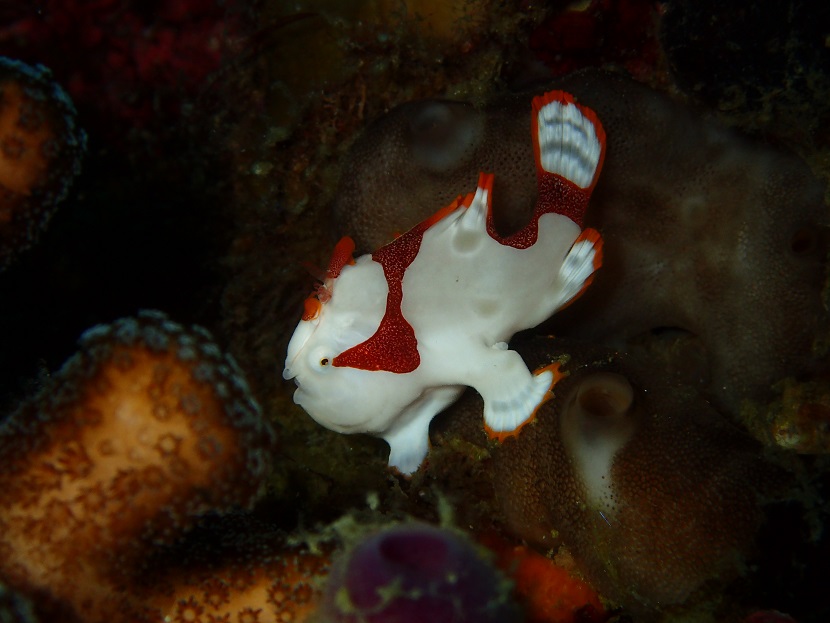 こちらはクマドリカエルアンコウ(白赤)ちょこちょこ動いて可愛いサイズでした😻水深も10mあたりとゆっくり撮れます📷