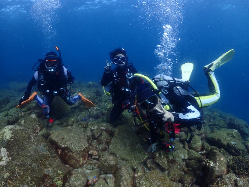 迷子になって一人で水面に上がった時に、フロートを上げないとダイバーがどこにいるかわかりません🙄そのために練習するんですが・・・意外とフロートの上げ方がわからない方が多い😱 まずフロートに空気を入れられない😂ここ数年のダイバーさんはオープンウォーターでやりますので出来る方もいますが、7~8年以上前にオープンウォーターを取得された方は使い方を習ってないので出来ない方がほとんどです・・・😆