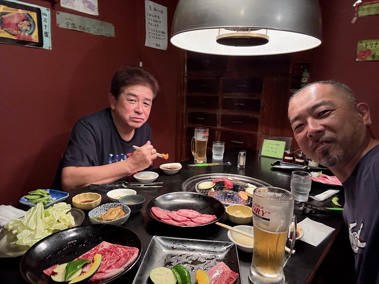 そして夕食は今回も焼肉「一條苑」さん、いつもたくさん頼むのですが、さすがにまだお昼のご飯がお腹に残ってますして・・・いつもの2/3くらいになりました🥩🍺🍜特に霜降り肉はおじさんたちにはキツイんですよねぇ~😆