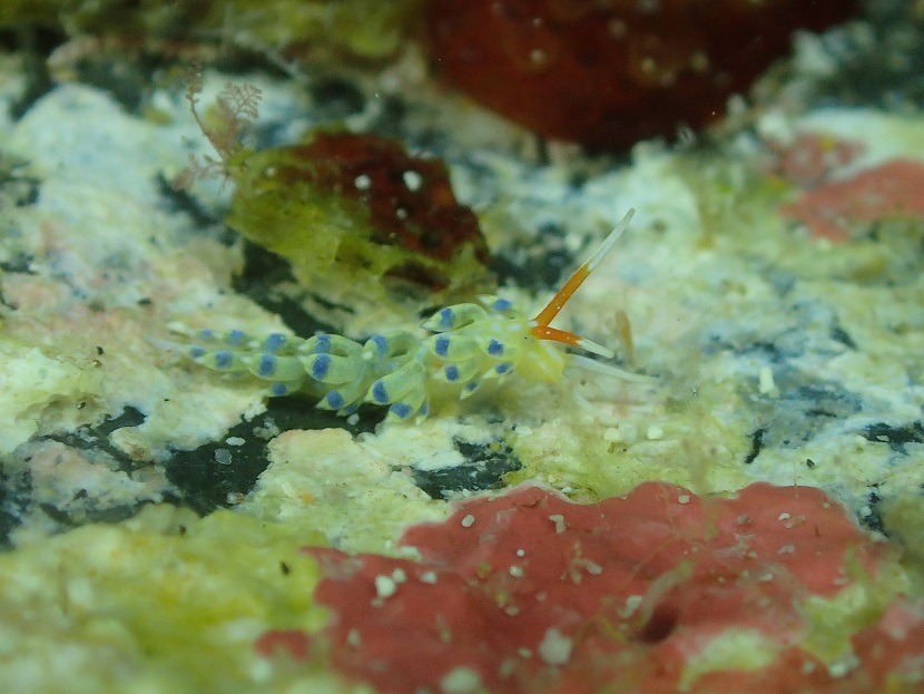 そしてこちらはアオセンミノウミウシでしょう~🧐こちらもかなり小さく顕微鏡モード必修😂
