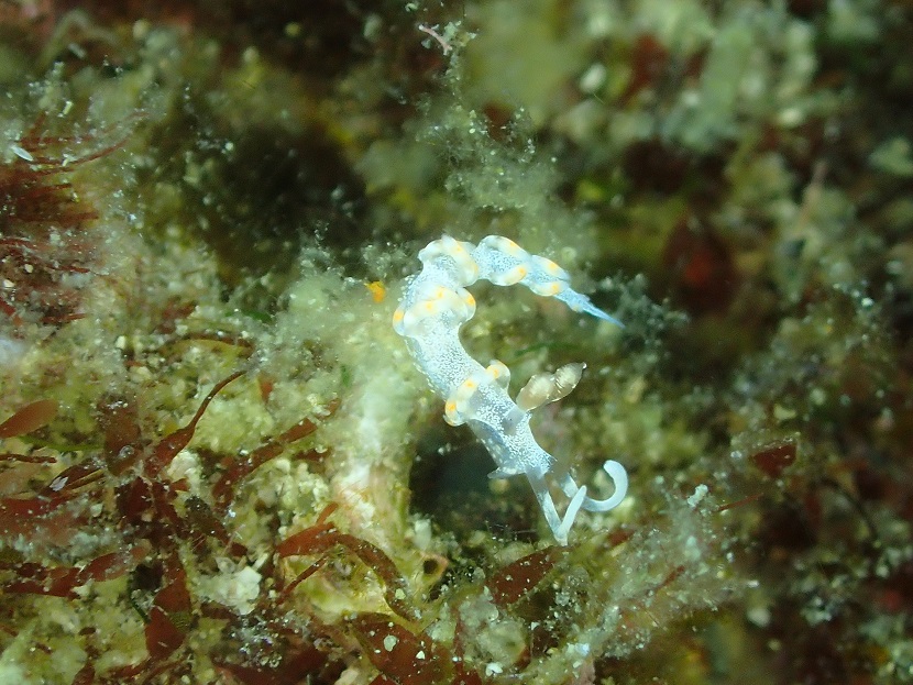 そうは言っても海の中はだんだん冬に向かってる感じでウミウシなどがちょこちょこ出てきました。こちらは極小のケラマミノウミウシ。もちろん顕微鏡モードでないと撮れません😂