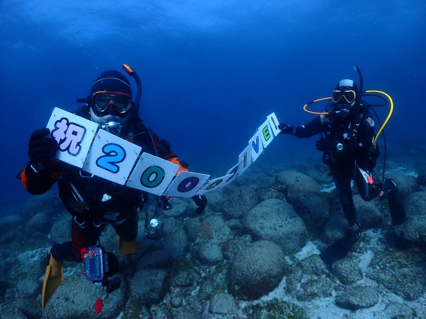 そしてこの度、Oさんが200ダイブを達成されました㊗透明度も良く青い海で記念ダイブできてよかったです。おめでとうございます😄