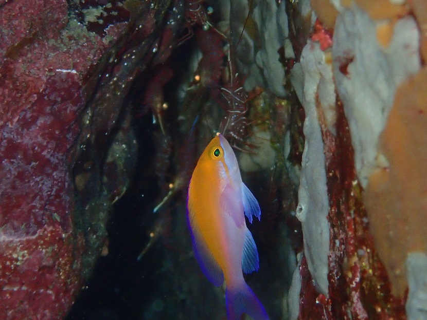 柏島では数は少なめ「フタイロハナゴイ」です。薄紫のヒレがキレイですよね~もう少し小さい個体の方が紫も濃く鮮やかです🤩