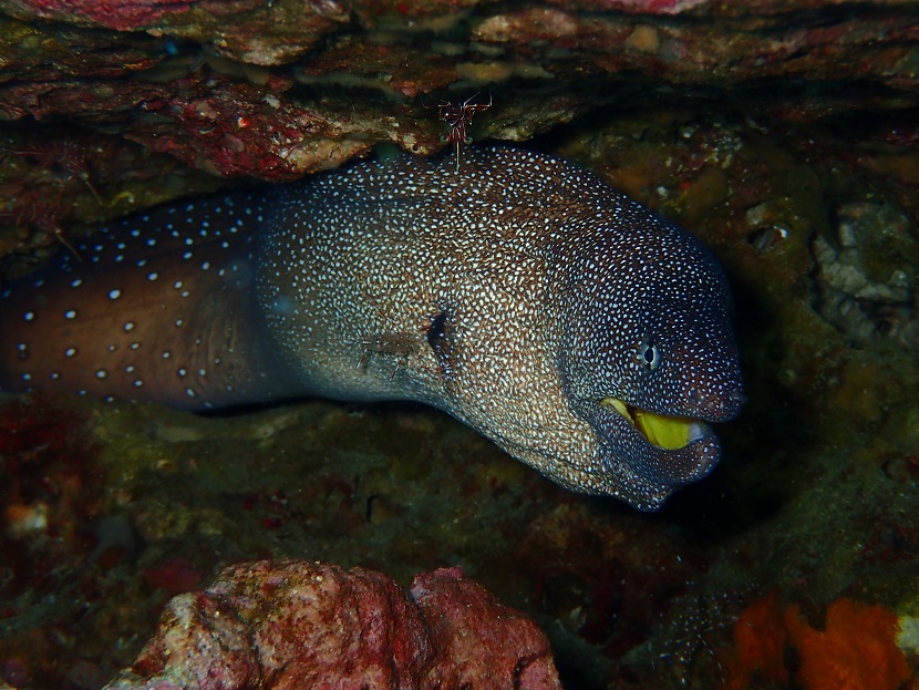 こちらはアデウツボです。口の中のイエローが特徴的なウツボです。また体が水玉模様がキレイです😊ハナヒゲウツボの次にキレイかと思います🐍