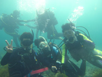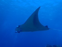 そして、ここでも、事件が・・・またお客様に浮上のサインを出して上がってもらっていたら、今度は、船の下に、3枚連なったマンタが現れたのです!大迫力でしたよ~(≧∀≦)数名のお客様はもう船に上がられてみることが出来ませんでした><;すみません・・・浮上サインのタイミング悪くて><;〔3枚連なったマンタ画像![]() で分かるかな~・・・〕