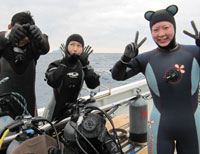 )停電で冷やせる本数に限界があるんでしょうね・・・といってもこのままじゃ~飲めない!氷をたくさん用意してもらい、冷やしながら飲みました(*_*)すると・・・申し訳なく思ったのか・・・広島出身と伝えたからなのか・・・サービスでビールがたくさん出てきました♪ありがとうございま~す(^ ^)ダイビング2日目!1本目は再び「ブルーコーナー」人気のポイントだけあって何度入っても飽きません!今度はバラクーダの群れも登場(^-^)ナポレオンなんかすぐ横に来てくれてちょっと触ってしまいました(>_<)2本目は「ブルーホール」縦に開いた穴に入っていくと壁面には「フチドリハナダイ」「フタイロハナダイ」「イエロードワーフゴビー」などいつも潜っているところでは珍しいかったり目にしない生物がたくさんです♪ブルーホールの水底では「ウコンハネガイ」「ニチリンダテハゼ」など。その後は皆で輪になって記念撮影☆ラストは「ベンテンコモンエビにクリーニングされてるアラレフグ」2本終わって昼食です。昼食ポイントで「タマカエルウオSP」 という不思議な生物がいるということで見てきました・・・。オスはトサカがあるということでこれは写真に撮らねば!見つけることができましたがそこはすでに水中ではなく陸上でしたΣ(゚口゚;こういうのに燃えるのはT.Kさんです。波を必死でこらえながら・・・陸写真なので結局ウエイトもフィンもマスクも全部取って撮影です(笑)でもさすが意気込みが違います。めっちゃかわいい!?タマカエルウオSPが撮れました(ゝ∀・)3本目は「ビッグドロップオフ」ここでも珍しい生物が見れました(^-^)体色が赤と白でクリスマスを連想させるような「キャンディードワーフゴビー」ハナゴイに黄色のカラーが入ったような「パープルビューティー」ドロップオフで群れている「オオテンハナダイ」体に目 のような模様の入った「ブルズアイドワーフゴビー」どれも日頃目にしない魚ばかりです♪この日の夜は「ドラゴン亭」へ。ほぼ毎回使っているお店で日本人の口に合う料理ばかりです。ここでは停電もなく、お腹いっぱい!おいしくお酒も飲めましたo(^-^)oあっという間にパラオ最終日です。早朝ダイブは「バッファローフィッシュ(カンムリブダイ)」が産卵しているということで「グラスランド」というポイントへ。エントリーしてバッファローフィッシュを探します。「あっ!いた!!」すでに産卵が始まっており興奮しているバッファローフィッシュは顔面が白くなっていますΣ(゚口゚;そしてメスを追いかけてオスたちが水面向けて猛ダッ シュ!もうすごい迫力です(@@)個体数もすごくてあちこちでその行動が繰り広げられています。ただ透明度が少し悪かったの写真には撮れませんでしたが心に残るシーンが見れました。ラストダイブは「シアスコーナー」へ。のんびりまったりダイビングしました。今回は海況にも天気にも恵まれパラオの海を満喫できました!さすがパラオ!あ~日記書きながらまた行きたくなってきた~~(>_<)ダイビング日記はここで終了!観光は「ジェリーフィッシュレイク」「ミルキーウェイ」へ!ジェリーフィッシュレイクのタコクラゲは昔に比べ、かなり個体数が減ったようでもしかしたらいなくなるかも!?と言われたのでしっかりタコクラゲと戯れてきました(>人<*)タコクラゲのあとはミル キーウェイ♪美肌効果があるということでみんなで塗りまくり~~(,,゚Д゚