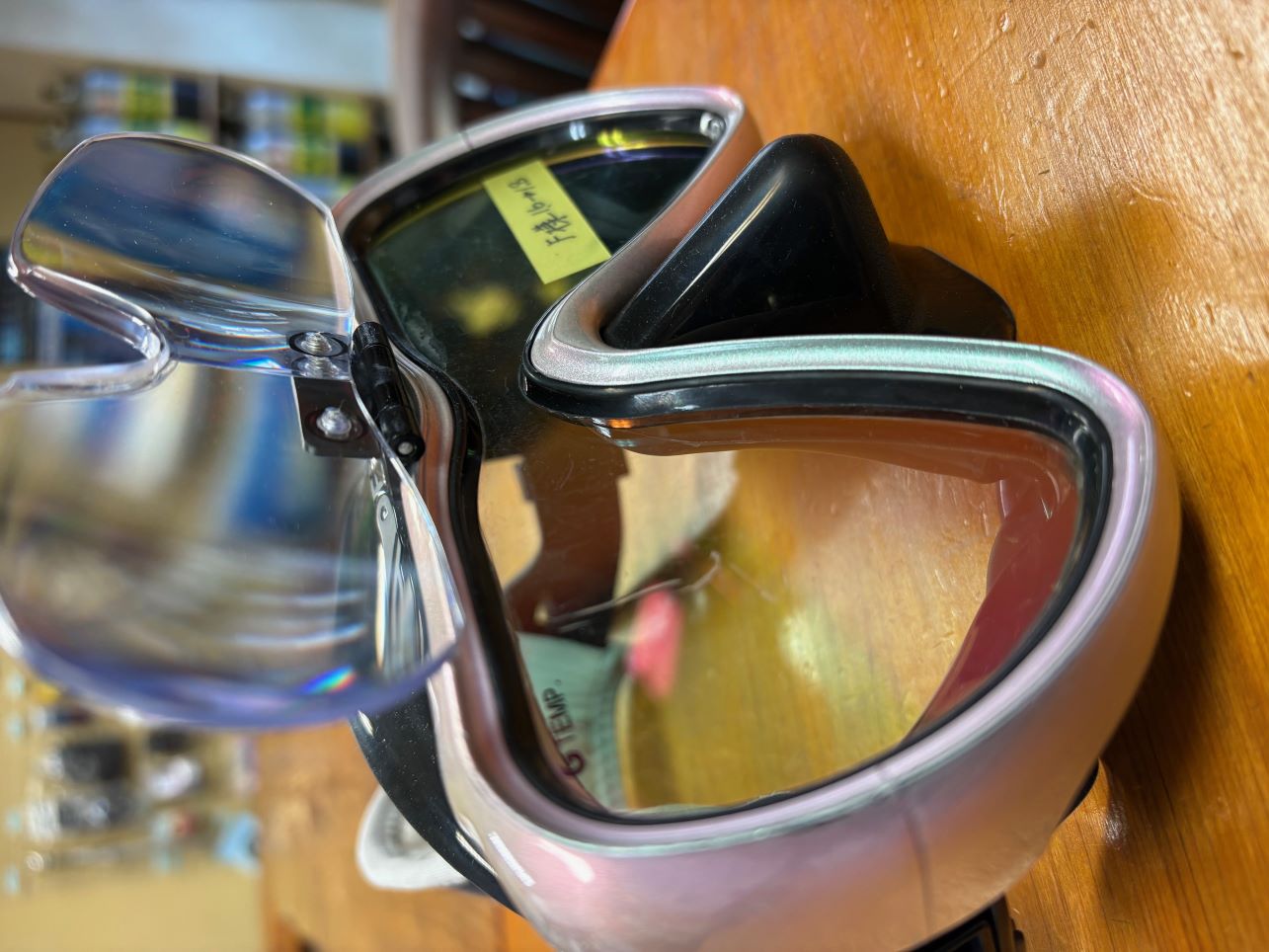 こちらのマスクは1st STAGEのお客様F様のヴェイダーとなります。2021年に1.6倍を取付いたしまして5年が経過しましたがヒンジの芯棒もビスも錆び無し😊 今回もう少し大きく見たいという事で1.8倍に交換依頼となりました。